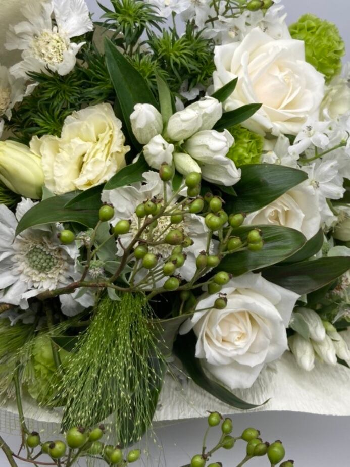 ホワイト・グリーン系のお花をメインに使用したフレッシュで爽やかなイメージのブーケです。